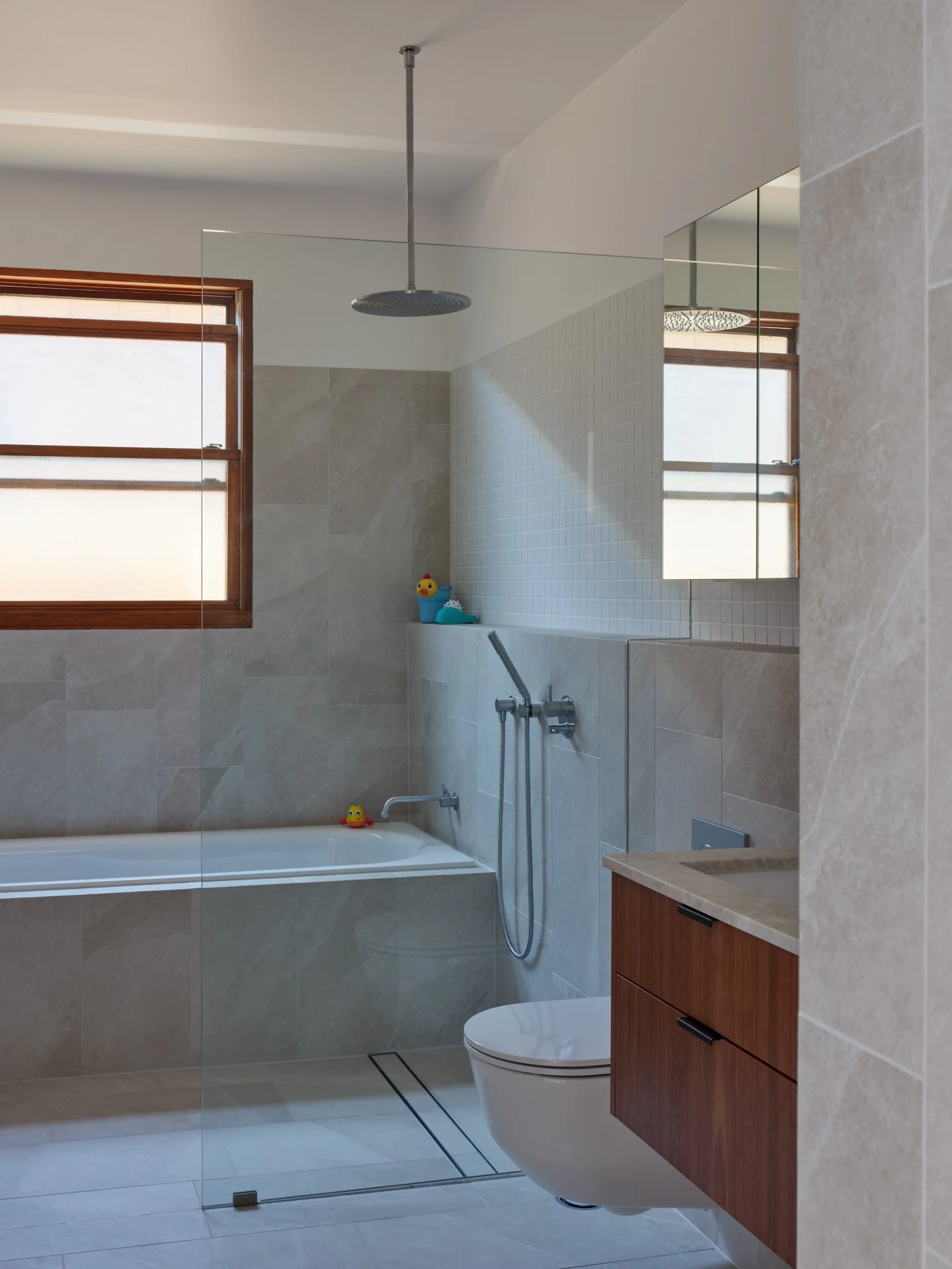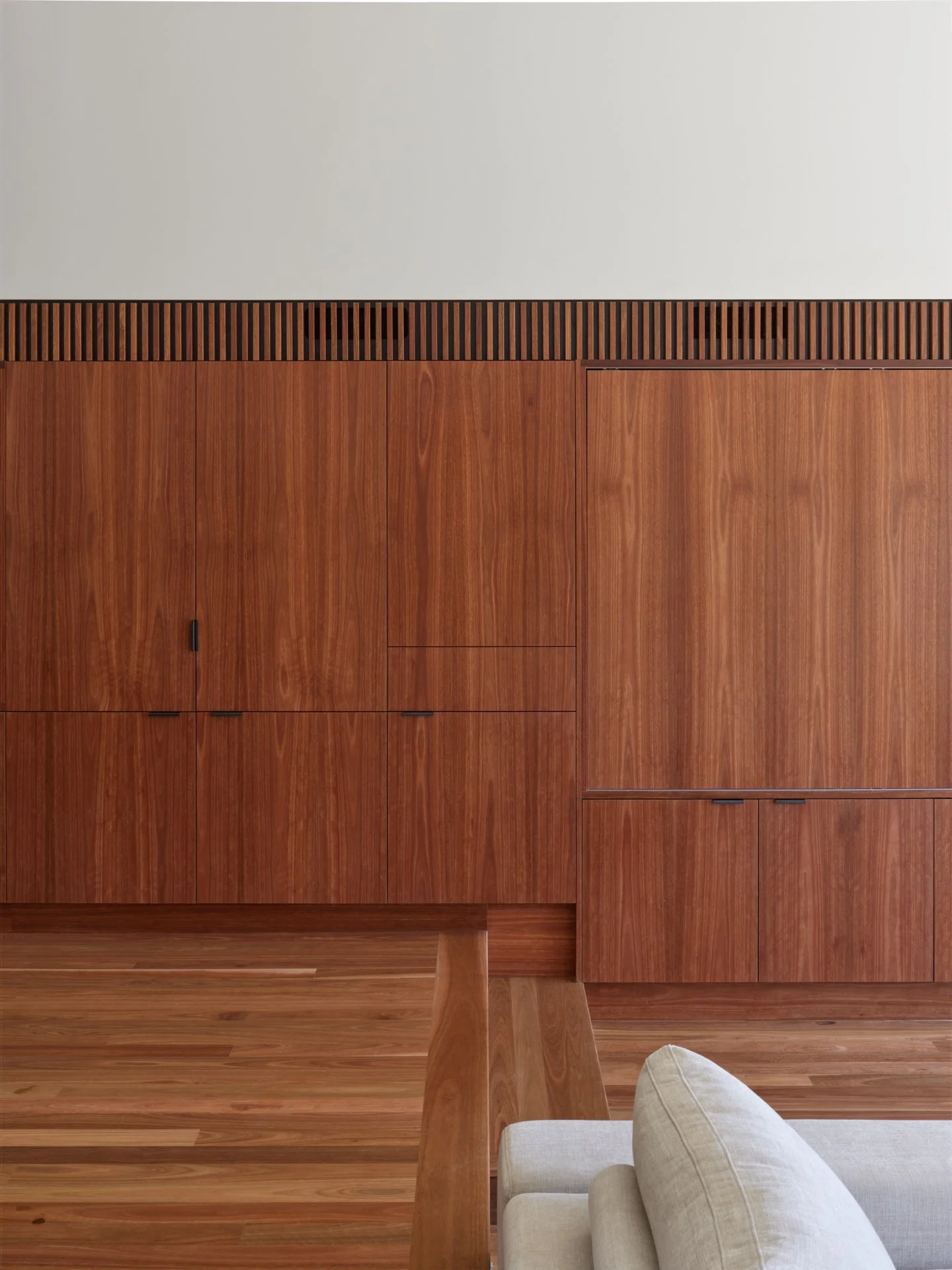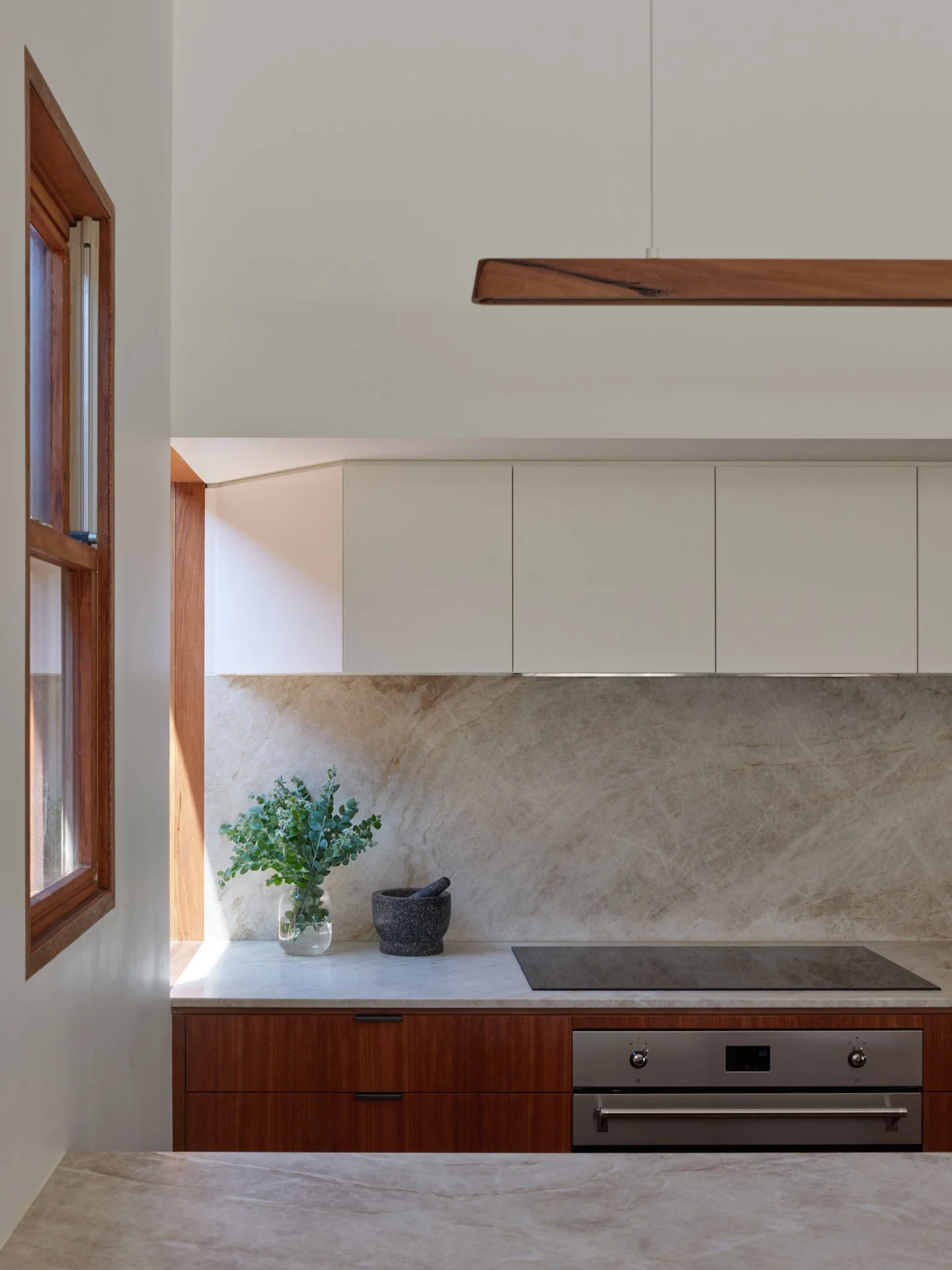 Seamless transitions and precise alignment were key to maintaining cohesion between old and new. Custom timber joinery, flush window details, and a cavity batten system for ventilation elevated both function and finish. Thoughtfully engineered shade structures, airtight sarking, and high-performance materials reinforced the home’s longevity. The result is a refined, light-filled space where the family can connect, with a studio retreat that offers privacy without feeling detached.